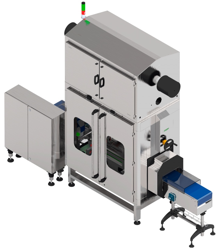 In drying systems for flexible packaging, the blower is located at the top for greater insulation from noise and external agents, and the drying components provide perfect drying on both the top and bottom of the packaging. The system cabin incorporates a washable acoustic insulation interior lining, access doors with safety glass, and inlet and outlet baffles.
