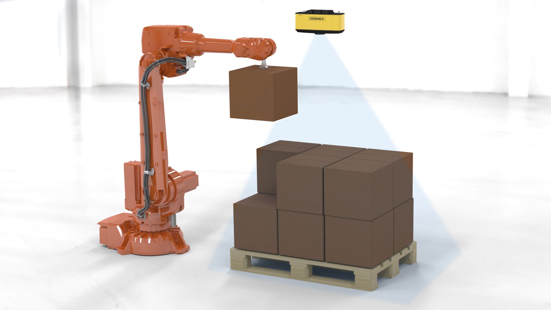 Machine vision guides and controls every movement in palletizing and depalletizing, ensuring accuracy, speed, and safety in product handling.