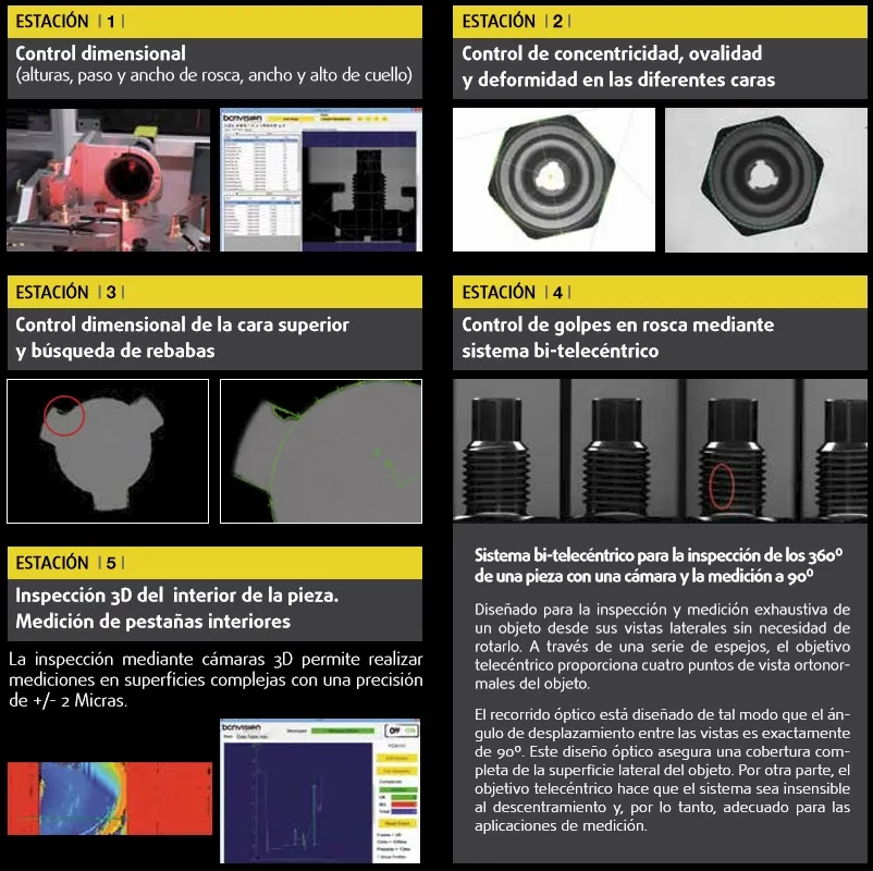 El sistema de visión está formado por 5 estaciones de inspección mediante visión 2D y 3D según el tipo de inspección a realizar: