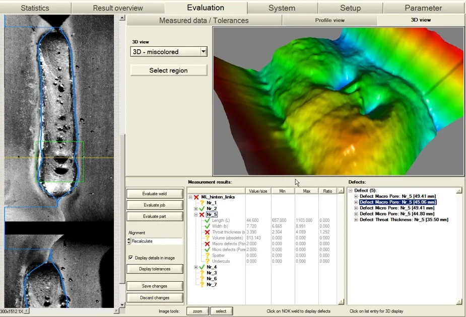 El sistema WeldVision, basado en metrología 3D sin contacto, es una solución flexible, robusta e integrable en cualquier proceso productivo. Permite la inspección de características geométricas tales como la longitud, anchura, altura, posición y volumen del cordón de soldadura, así como la detección de defectos típicos como poros, orificios o muescas.