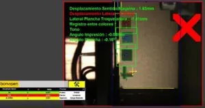 La cámara verifica las desviaciones de las maculas de color tanto en posición como en color. La cadencia depende del tamaño de la caja de cartón, puede llegar hasta 500m/s.