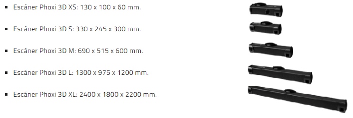 Los escáneres PhoXi 3D permiten escanear desde diferentes distancias y volúmenes de escaneo: desde 25 micras hasta 500 micras según FOV.