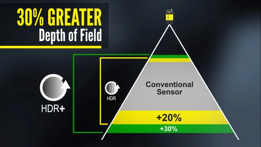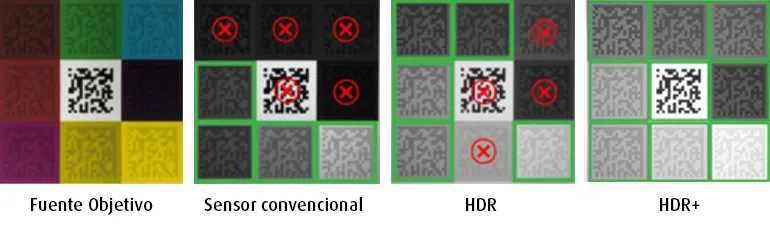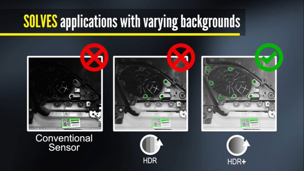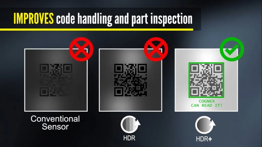 Aplicado a la visión artificial el HDR aumenta los cambios de contraste localizados de forma automática, creando así imágenes más uniformes en una sola adquisición, aumentando también una mayor profundidad de campo, velocidades de línea más rápidas y una mejor lectura de códigos difíciles. Cognex ha mejorado el HDR con el HDR+ que contiene un algoritmo avanzado que amplía los límites de la tecnología HDR.