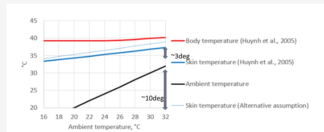 entre la piel y la temperatura corporal pueden llegar hasta tres grados de