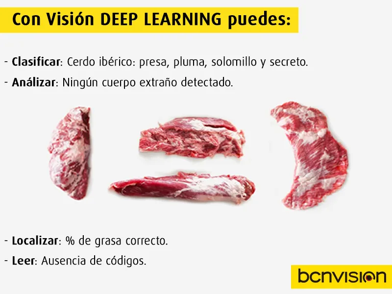 Los productos de la industria cárnica deben cumplir un gran número de normas y estándares de calidad. La automatización de procesos ayuda muchísimo a cumplir con todos los requerimientos establecidos y uno de los elementos responsables de diversos controles es la visión artificial. Actualmente es posible realizar aplicaciones, antes impensables, gracias a tecnologías como el Deep Learning.
