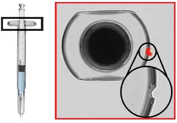 Inspección de la lengüeta de apoyo de la jeringuilla: