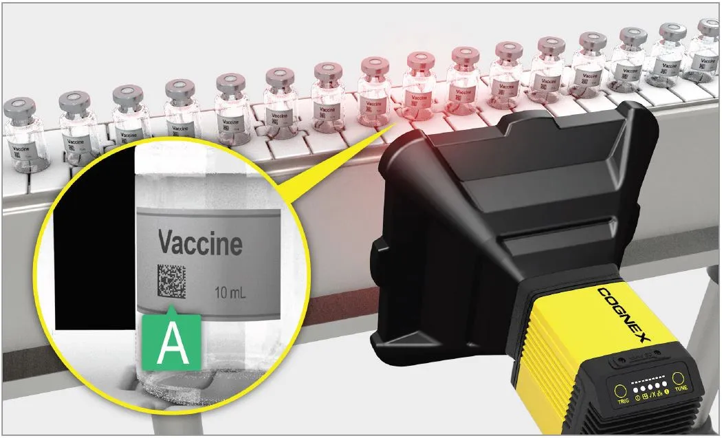 Los lectores fijos de códigos de barras basados en la captura de imágenes de Cognex reducen el contacto con el embalaje mientras envían las vacunas y los medicamentos perecederos de forma rápida.