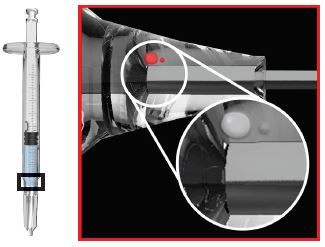 Deep Learning inspecciona los montajes de las jeringuillas y las agujas en busca de burbujas, grietas, de una incorrecta unión adhesiva de la aguja, problemas en el cono u otras inclusiones.