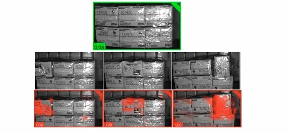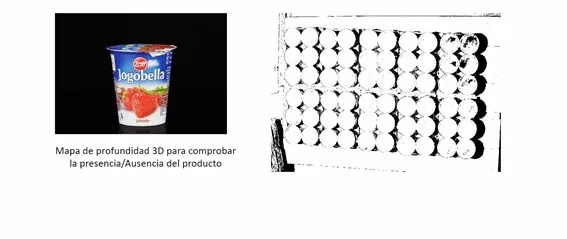 La imagen con la reconstrucción 3D de la caja permite detectar si falta o está mal colocado alguno de los productos. Es tipo de aplicación también seria aplicable para comprobar la correcta conformidad de un pallet.