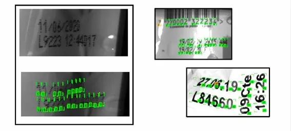 En la siguiente imagen se pueden observar los resultados de lecturas OCR complejas con Deep Learning, confirmando que gracias a esta nueva tecnología ahora es posible la lectura de caracteres complicados de leer con visión artificial convencional.