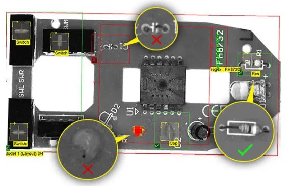 Con la tecnología de visión Deep Learning, además de poder realizar inspecciones en productos electrónicos, también podrás clasificar la tipología de los defectos, en este caso se debe entrenar el sistema con la herramienta classify, nombrando los diferentes tipos de anomalías y clasificándolos según el tipo de error para su posterior clasificación en la inspección. Con lo que podrás localizar y clasificar el defecto, obteniendo una información más completa que le ayudará a analizar dónde se producen estos defectos y porqué.