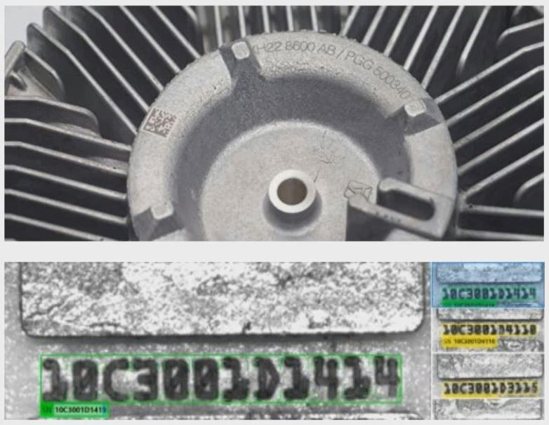 Por ejemplo, en la industria del automóvil la identificación de vehículos es muy importante para llevar una exitosa trazabilidad, con lo que la descodificación de estos códigos con número y letras marcados directamente en el metal o etiquetas es muy importante. En ocasiones es difícil localizar y reconocer los caracteres por la luz especular, los colores de la pintura, el brillo que el propio sistema de visión genera, etc., representan un gran desafío para la lectura OCR, pero con la lectura OCR basada en Deep Learning ahora ya es posible.
