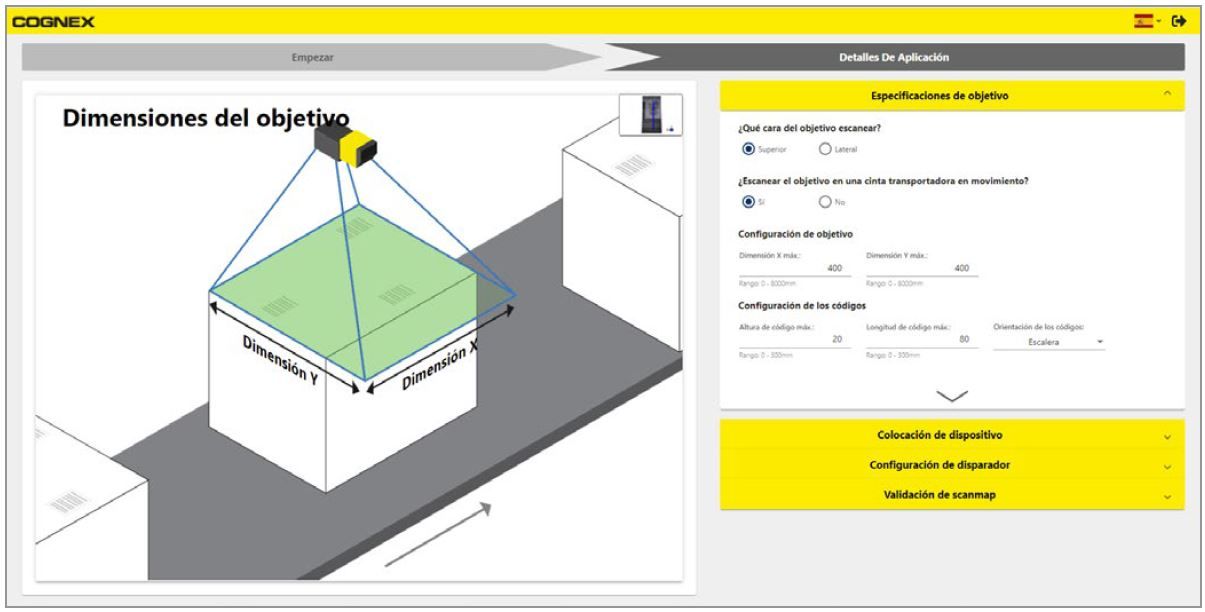 El Espejo Orientable de Alta Velocidad cuenta con un asistente de configuración basado en la web incorporado que le permite a los operarios implementar una aplicación en 5 minutos o menos. El usuario solo necesita ingresar las especificaciones de su aplicación y el asistente calcula automáticamente el patrón de escaneo óptimo. Esto garantiza las mayores tasas de lectura de códigos con amplios campos de visión con los ciclos más cortos.