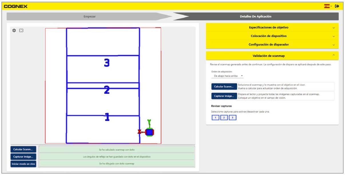 Vea el mapa de escaneo calculado y la cobertura del campo de visión en la pestaña de validación de mapa de escaneo.