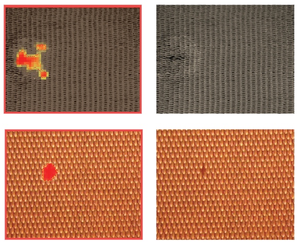 Las zonas defectuosas del tejido pueden identificarse y notificarse rápidamente, al tiempo que se toleran variaciones grandes pero irrelevantes en su aspecto. Y lo mejor de todo, ¡no hay necesidad de extensas bibliotecas de defectos!