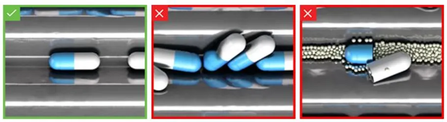 - Inspección de productos: Verificación del color, tamaño e integridad de tabletas, píldoras, viales y jeringas. Estas inspecciones eliminan la posibilidad de que productos defectuosos lleguen al consumidor final, reduciendo riesgos y costos asociados.