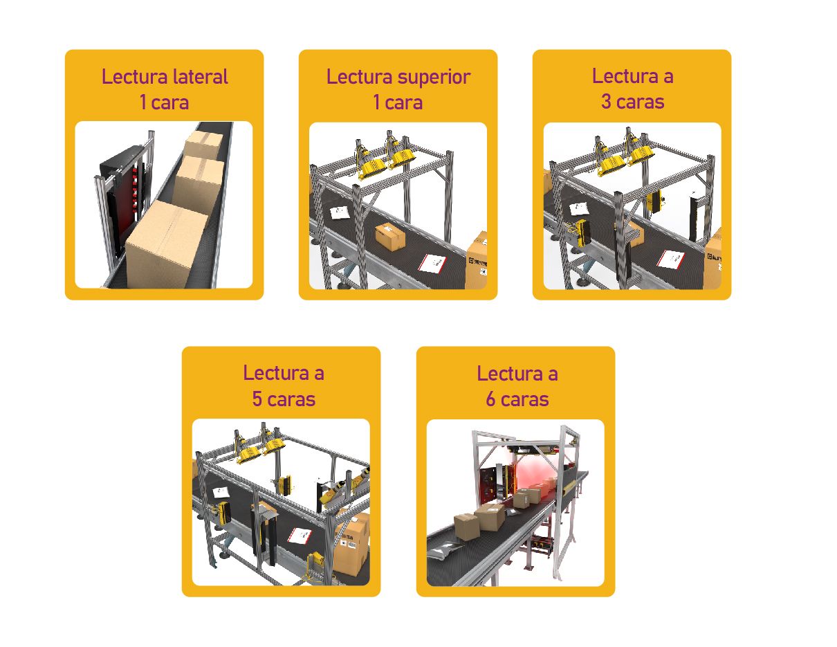 Según las necesidades de cada centro de distribución, se pueden escoger diversos tipos de Tunnel Scanning. Entre estos, podemos encontrar túneles de escaneo que leen de 1 hasta 6 caras de los paquetes.