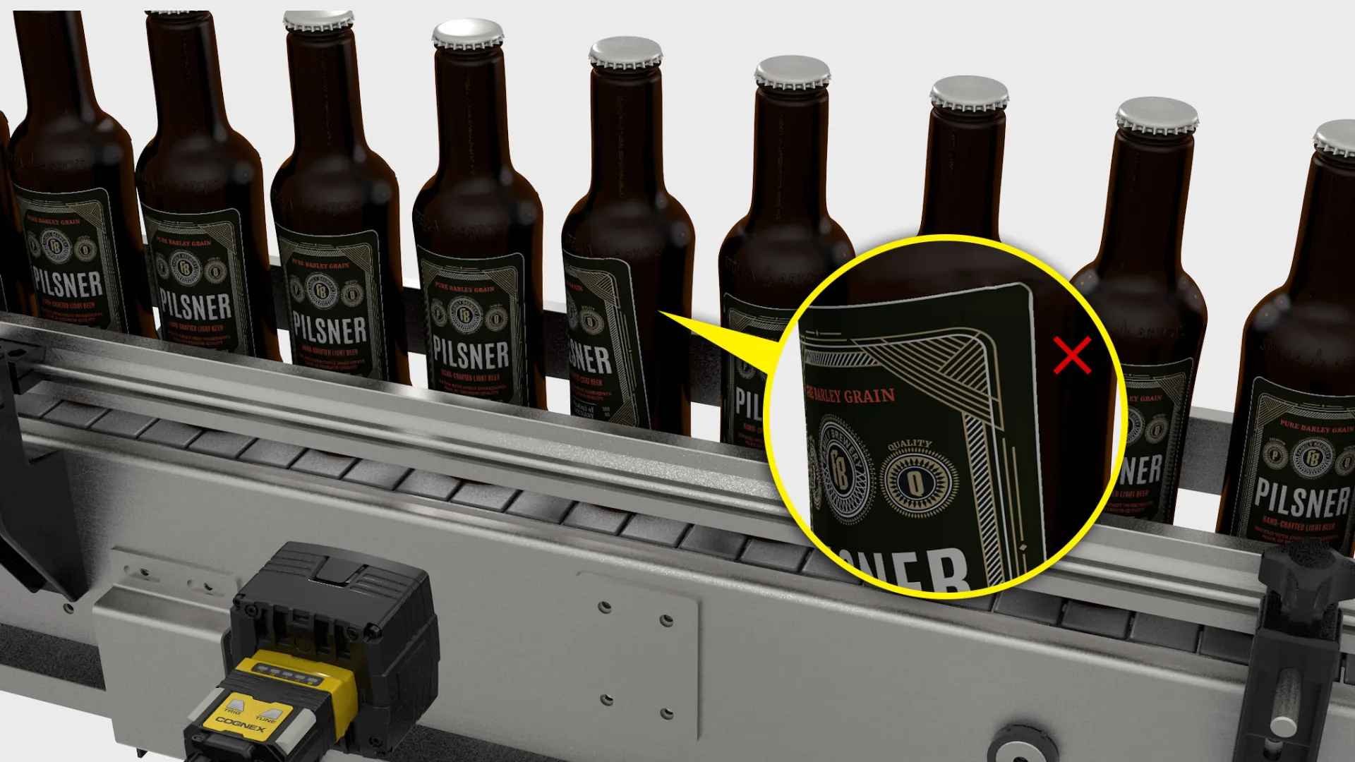 - Envases de vidrio de cerveza o vino: verificación de etiquetas frontales y traseras, y control de nivel de llenado complementario.