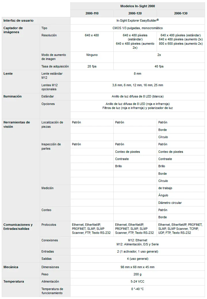 Modelos de gama In-Sight 2000 de Cognex