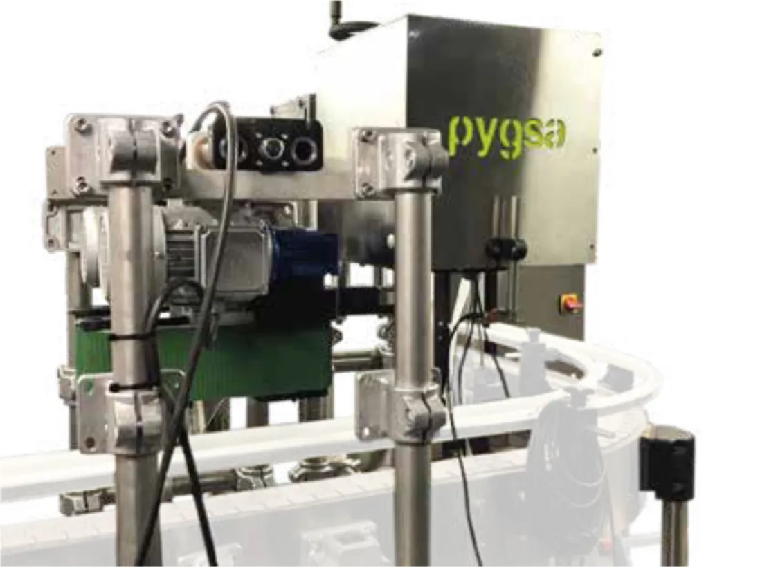 - Sistema "Can Dryer", montado en la parte superior del transportador para secar las tapas o los fondos (tras el twister).